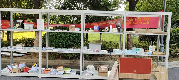 随着2022届本科生离校,不少同学留下各类生活、学生物品,不方便带走,直接丢弃又非常可惜,特别是各种学习书籍往往对学弟学妹有着特殊的价值,对此,6月15日——6月23日,公寓服务中心党支部联合学生党支部在将军路校区和园37栋、东区25栋、怡园22栋以及明故宫校区B18栋前,举办毕业季易物市场活动,为同学们提供一个互助交流的机会,展台上摆满了各类物品,有书籍笔记、有折叠桌椅、有鱼缸花瓶......琳琅满目,令人目不暇接。为了便利学生,中心临时建了“跳蚤市场临时交流群”,方便同学线上交易,形成线上线下同步市场。学生们有的卖力推销、积极介绍自己的物品,有的发挥“讲价天赋”和卖家积极沟通,有的拍照留念、上传朋友圈晒出交易成功的喜悦,活动期间,线上线下交易成功闲置物品合计200余件。