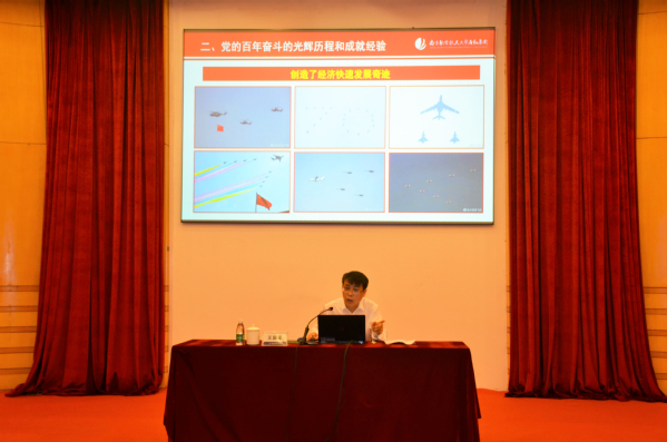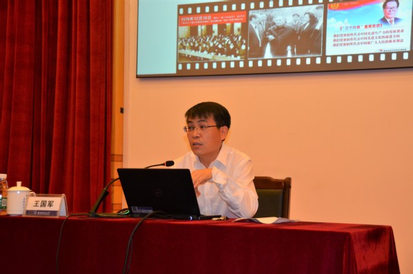 党员大会结束后,王国军作了题为《从党的百年奋斗史中汲取智慧和力量,推动后勤事业高质量发展再上新台阶》的学习贯彻十九届六中全会精神专题党课。他从对十九届六中全会精神的学习理解入手,结合后勤工作实际,通过12345101013一组数字,用一个根本问题、两个确立、三次历史性飞跃、四个伟大飞跃、五大历史意义、十个明确、十个坚持以及十三个方面历史性成就和变革对《决议》内容进行了总结提炼;通过回答中国共产党从哪里来、中国共产党走过了什么样的路、中国共产党作出了什么样的贡献、中国共产党为什么能够成功四个问题,全面回顾了党的百年奋斗的光辉历程和成就经验;通过从党的百年奋斗史中汲取智慧和力量,对后勤事业发展提出了六点启示:感悟思想伟力、指导工作实践,坚持师生至上、做好服务保障,把握规律大势、争取发展主动,坚持开放创新、勇于变革突破,坚持敢于斗争、应对风险挑战,坚持团结协作,汇聚磅礴力量。