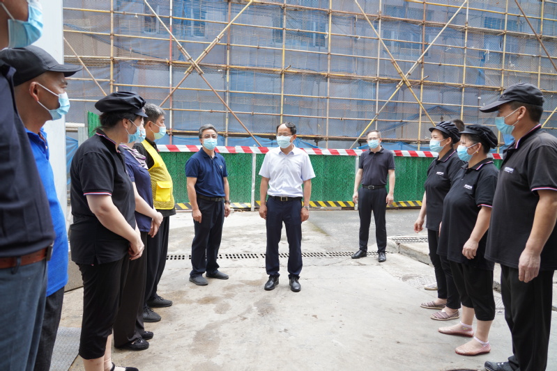 每到一处,领导们感谢后勤员工在校园疫情防控、防汛防灾和各项服务保障工作中所付出的辛劳与汗水,详细了解了暑期各项保障工作开展情况,关切地叮嘱大家越是在假期,越是要树牢安全发展理念,紧绷安全之弦,同时,合理安排作息,做到劳逸结合,注意防暑降温,以更加饱满的热情,继续为全校师生暑期学习、工作和生活提供更加安全优质的后勤服务保障。