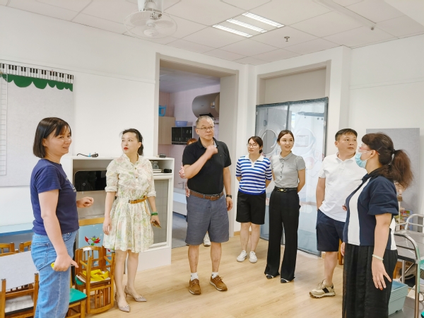 声声问候传递深切关怀,亲切慰问温暖人心,8月22日下午,集团总经理贡建伟、副总经理俞广波、总经理助理李民惠来到幼教中心指导幼儿园的开学保障工作,同时对辛勤工作在一线的教职员工们进行慰问,表达了对他们诚挚的问候。