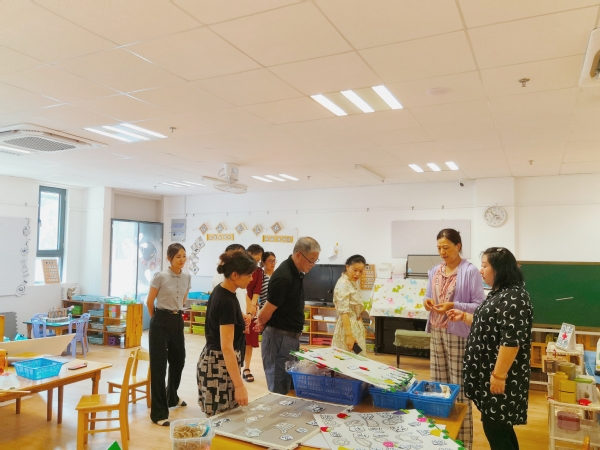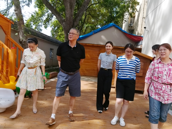 集团领导在幼教中心主任陈慧云、副主任尤春香、吉欢的陪同下,对改造后的新园舍外部环境打造、硬件设施提升、室内环境布置等进行了仔细查看,详细了解了新园舍建设、疫情防控、安全保障等各项工作。领导们每到一间教室都会仔细查看并询问教室内环境创设的情况,在和老师们的交流沟通中,提出了创意的建议,对幼儿园充满“童趣”的环境给予了肯定。