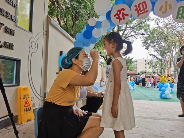 初秋清凉、阳光恰好!孩子们和家长踏着轻盈欢快的脚步,有序地进入幼儿园,通过保健医生晨检测温防疫第一关。
