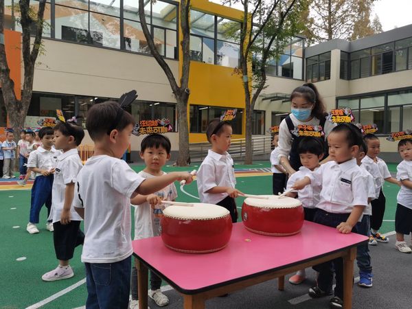 “击鼓报到”:幼儿园因为你们的到来重启欢乐键,希望你们在这里学到更多的本领,拿起手中的小画笔,把未来生活描绘得更加美丽,让我们放飞心灵,展开歌喉,共唱一首幸福欢乐的歌。新学期让我们扬起风帆,一起向未来,也祝愿小朋友们“一鸣惊人”。