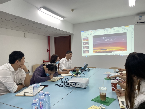 读书分享结束后,举行了“青年讲堂”培训活动,第一讲由中心主任助理王子瑜为所有参会青年骨干进行应用文写作培训。他从如何写消息、如何写报告、如何写总结三个方面向大家介绍了几种工作中常见应用文的写作方法。在培训中,他详细讲解了三种文章的类型、组成、结构等基础知识,并结合大量例子说明了不同类型应用文写作时需要注意的事项。培训内容丰富,贴合工作实际。他简洁生动、深入浅出地讲解,使人受益匪浅。