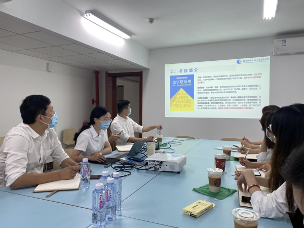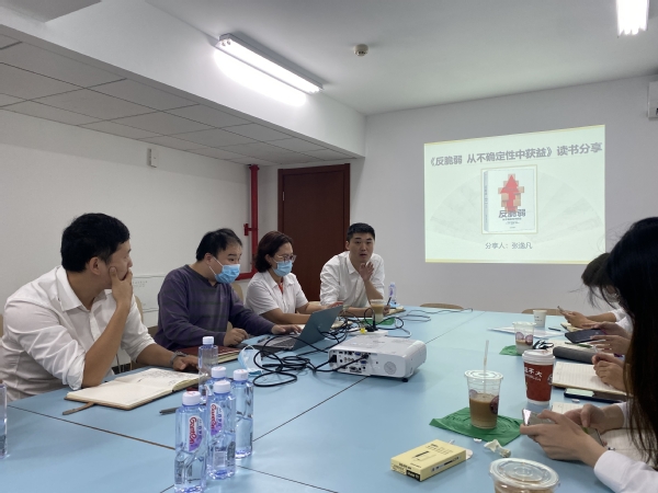 会上,首先由中心青年骨干黄兰兰、张逸凡分别与大家分享了《金字塔原理》、《反脆弱从不确定性中获益》两本书。他们以PPT的形式,围绕“如何思考和解决问题”和“反脆弱性”两个话题,对书籍内容进行了详细解读,并结合自身工作中的具体事例,分享了自己的读书感悟。其他参会人员深受启发,结合公寓管理工作交流了自己的心得体会。