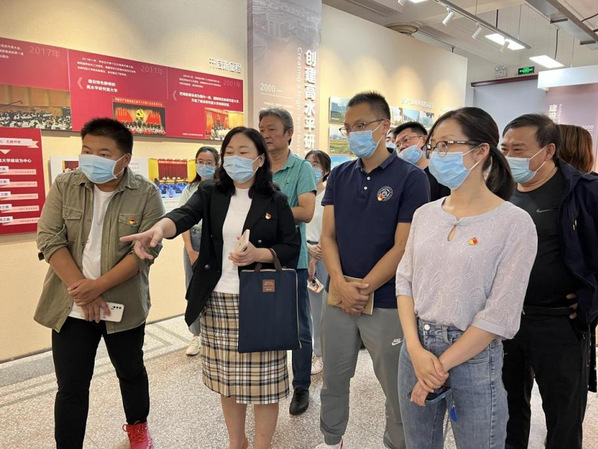 学习伊始,参观人员在校史馆门前留影并在讲解员的带领下井然有序的参观了校史馆内“发展历程”“人才培养”“科学研究”“党建引领”四个展厅。在“发展历程”展厅,通过阅览珍贵的文史资料和照片,参观人员进一步了解了我校历史与文化传统:南京航空航天大学诞生于抗美援朝烽火之中,拥有与生俱来的红色基因。在近70年的办学历程中,始终坚守“为党育英才,为国铸重器”的使命担当。“负重奋进,航空报国”也已经成为南航特有的办学精神。在“人才培养”和“科学研究”展厅,学校人才培养观及教学科研成就以图文并茂地形式生动呈现,老一辈航空工程技术人才投身新中国航空教育事业的奋斗事迹感人肺腑;在“党建引领”展厅,讲解员以中国工程院院士戚发轫和贲德为例向大家讲述了老一辈共产党员淡泊名利,投身伟大事业的爱国情怀和使命担当,引发全体党员深思。