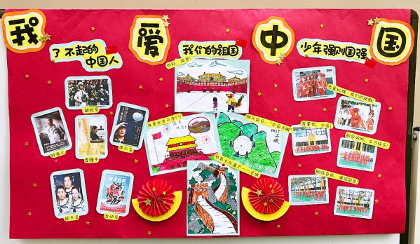 为庆祝祖国妈妈73岁华诞,孩子们通过绘画和手工活动,并在家长和老师们的帮助下,制作了不同内容的国庆节宣传展板,展现了他们的爱国之情。