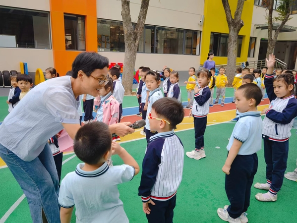 主持人许燕老师跟孩子们交流,让孩子们知道国庆节这一天对于我们来说意义非凡,并和孩子们强调了安全注意事项,让孩子们了解到要珍惜这来之不易的生活,希望所有小朋友都能努力学习,长大后为祖国做贡献。