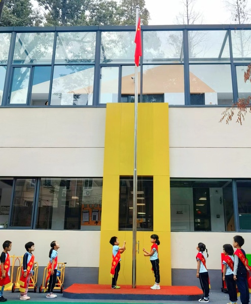 伴随着早晨的朝阳,雄壮的歌曲庄严奏响,小小护旗手迈着整齐的步伐,一同护送国旗走上升旗台,所有人专注地注视着那面五星红旗冉冉升起、迎风飘扬,这震撼着每一位孩子的心。一场正式而又庄严的升旗仪式,使孩子们对祖国妈妈充满了自豪与骄傲。