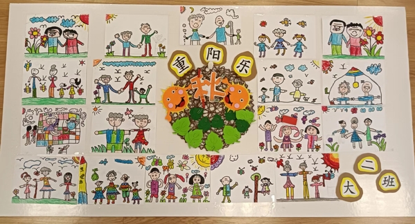 大班的小朋友创意无限,为爷爷奶奶,外公外婆们精心创作了手工作品—重阳节茱萸花束。流畅的线条、美丽的花朵,都深深饱含了孩子对他们的感恩之情!大二班的老师和孩子们用一双双灵巧的双手,制作出精美的展板,还学习到很多重阳节的知识,让我们一起来看看吧!