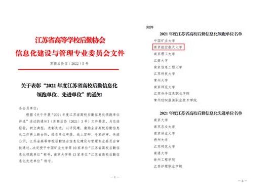 近日,江苏省高校后勤协会公布“2021年度江苏省高校后勤信息化领跑单位、先进单位”名单,集团获得“2021年度江苏省高校后勤信息化领跑单位”荣誉称号。