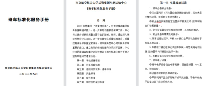 明确标准化战略发展目标,与校内外高标准运输管理单位研讨交流,对疫情防控要求下高校车队发展的市场现状、业务发展、服务需求等方面进行深入分析探讨,调研学习优势内容。9月,中心出台《班车标准化服务手册》,并落地实施,形成统一管理、分工负责、监督有力的标准化工作管理体系,有效提升车队运输服务保障能力。