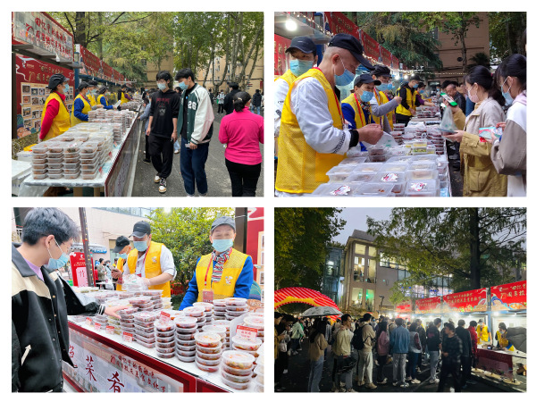 特色区主打创意美食,食堂大厨集思广益,推陈出新带来特色菜肴南乳大虾、香酥鹌鹑、香酥黄鱼、特色小吃糖炒栗子、关东煮、现炸臭豆腐,还有最具人气的新疆烤羊肉串、现场中西点心更是多达30余种,色香味俱全的美食盛宴让师生校友享受其中,欢乐的气氛弥漫整个校园。