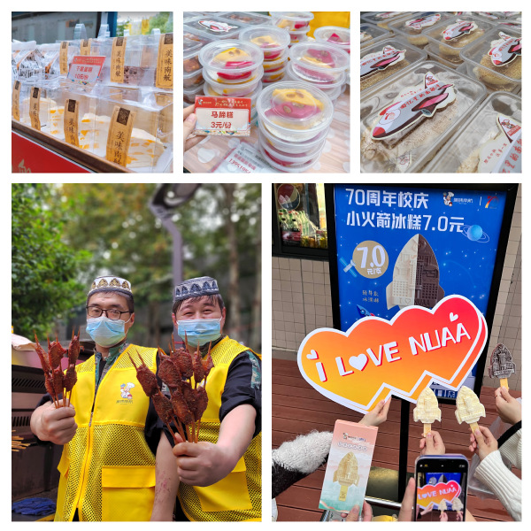 本次美食节盛大空前,展销现场分为回忆区、特色区、烧烤区、中式点心和西式点心区四个区域。经典风味,创意爆款,南北小吃,民族风味,百余种美食云集。回忆区主打80、90年代老南航情怀,精选卤大排、盐煎肉、粉蒸排骨、卤叉烧、脆皮酱鸭、酱大肉、红烧鱼段、酱爆猪肝等老南航味道,用美食唤起师生味觉记忆。品尝经典美食,回顾温情岁月,为学校七十华诞送上生日祝福。