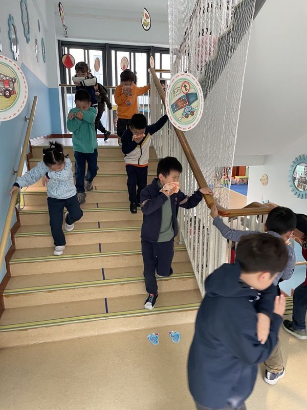 随着“呜呜”的警报声响起,孩子们迅速用手或袖子捂住口鼻,在班级老师的指导下弯下身子快速逃生。在各层疏散引导人员的引导下,各班幼儿按预定撤离路线有序撤离到操场,现场秩序井然,幼儿的情绪稳定。
