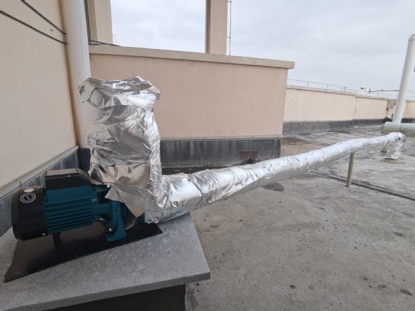 了解到这一信息后,后勤集团副总经理俞广波、水电中心副主任刘如高度重视并第一时间到达现场,和相关技术人员讨论整改措施,确定解决方案,并立即组织维修人员对其中1间卫生间增压泵先行进行改造测试:将原先使用年限较长、噪音较大的旧泵更换为新型静音泵,并更改管路将其全部移至屋面,做好水泵保温、隔音措施,尽量远离学生生活区域。该台增压泵改造完成后学生反馈消声降噪非常明显,达到预期效果。