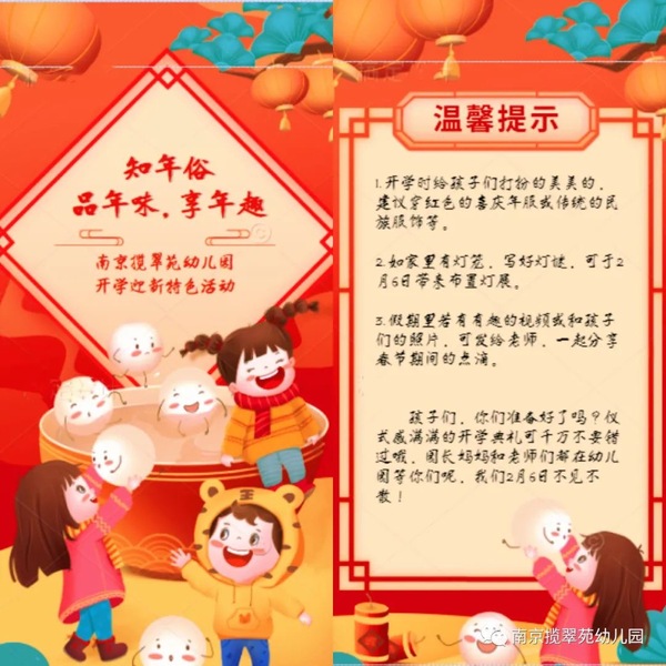 年是中华文化的浓缩,年是中国人抹不去的心结,中国年俗有说不完的故事。我园一直坚持以中华优秀传统文化润泽童心。开学伊始,园领导和老师们精心策划了“知年俗、品年味、享年趣”特色迎新活动。愿我们的孩子能将这些饱含浓浓亲情和美好心愿的习俗牢记心中,代代相传。