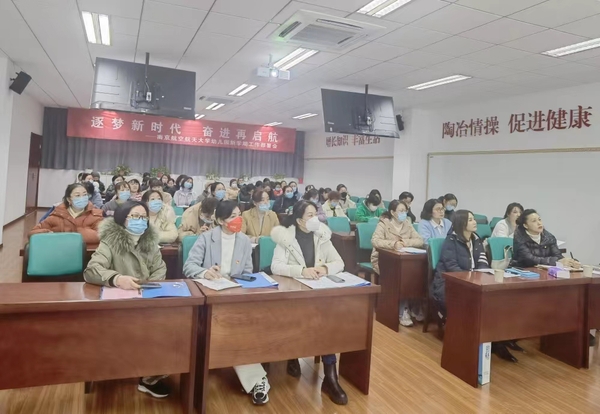 幼教中心主任陈慧云带领全体教职工一起回顾2022年所取得的成绩,充分肯定了大家的辛勤付出。接着介绍了新学年的四大工作部署:一是省优复审的保障工程,二是骨干教师的培育工程,三是科研能力的提升工程,四是特色文化建设工程。提出我们要深入学习党的二十大精神,贯彻党的教育方针,以加快高质量的发展为主线,以省优复审为牵引,深化党建领航、队伍建设、以研促教和硬件发展体系,加速建设航空航天特色鲜明的幼儿园,不断提升保教质量。
