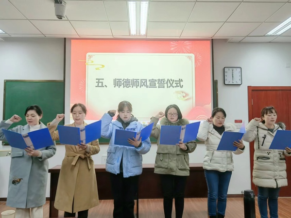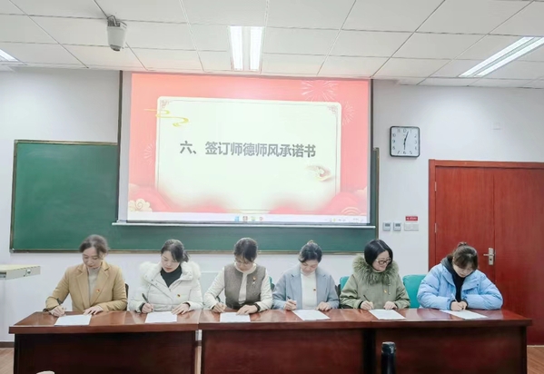 教师是立校之本,师德是教育之魂,教师事业影响这一代又一代人成长,也影响着国家和民族的未来的事业,为进一步加强师德师风教育,聚焦教师理念,党员代表庄重地诵读誓词,字字句句铿锵有力,无不表明着大家的决心,也饱含着每一位教师对教育事业的责任与忠诚,随后全体教师签订了幼儿园师德师风承诺书,笔尖划过,附上姓名,是承诺的印证,更是爱的信物!