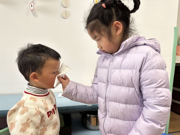 在雷锋精神的引导下,中大班哥哥姐姐充分发挥以大帮小的作用,化身小雷锋去帮助弟弟妹妹整理衣服、喂饭、擦嘴,关心他人。他们还是小小清洁员,在操场上认真打扫,捡落叶,幼儿园的每个角落里都留下了“小雷锋”的身影,为幼儿园添上一抹温暖明媚的色彩,真正的践行雷锋精神。