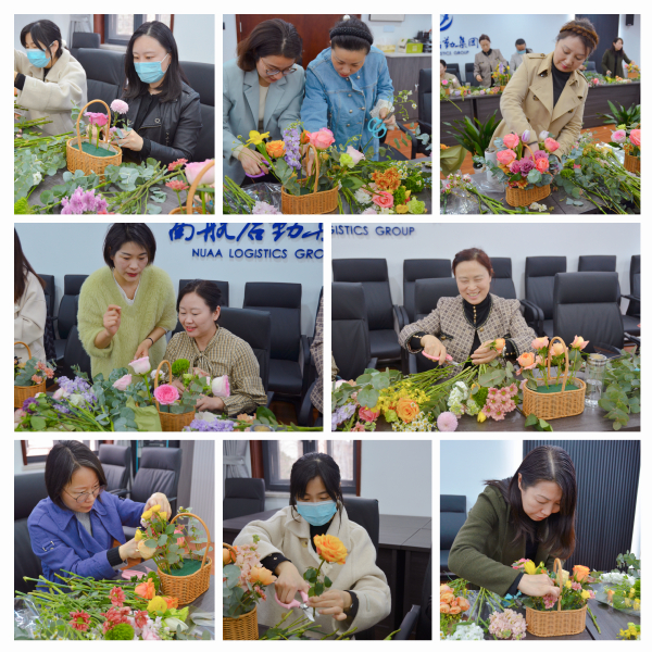 为凝聚力量,关爱女工,致敬平凡的岗位忠诚坚守、默默奉献的女员工。后勤集团机关工会于2023年3月8日在明故宫校区后勤楼300会议室举办了以“爱在三月,情暖花开”为主题的插花拾趣沙龙活动。后勤集团工会主席李民惠、党委副书记侯贵菊、副总经理颜萌、总经理助理孙颖以及集团机关及工会小组女委员等共20人参加了活动。