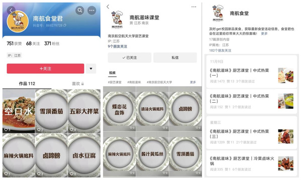 “南航滋味”厨艺课堂项目精心打造的教学体系,内容从中餐到西餐,从红案到面点、西点,浅显易懂、实操性强,且在微信公众号、抖音短视频等建立“空中课堂”,通过新媒体传播供更多师生校友在线学习观摩,使师生接受餐饮文化熏陶和劳动教育技能培训。