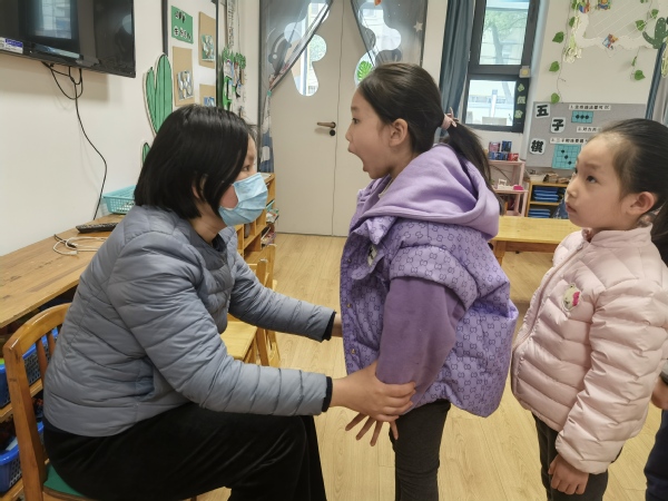 老师组织幼儿有序入厕后进行午检,检查嘴巴里是否有异物,手里口袋里是否携带危险物品,保证幼儿午睡的安全。中大班的哥哥姐姐自己脱下外套和裤子,并折叠放好,小班的幼儿也将衣服、鞋子摆放整齐,养成了基本的生活技能和良好的生活习惯。