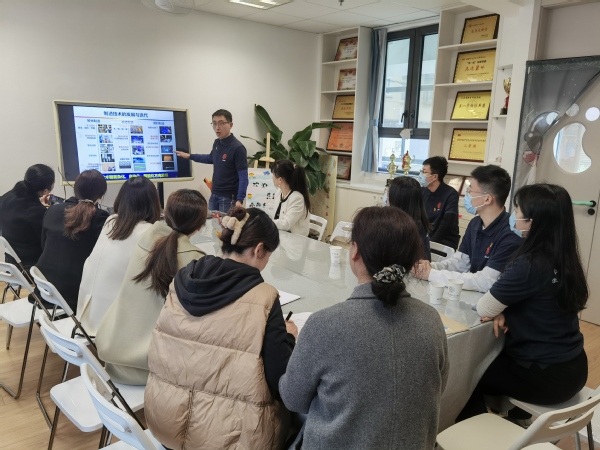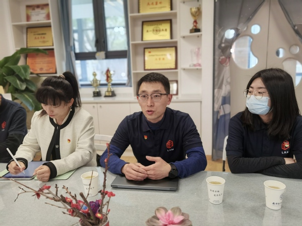 活动伊始,幼教中心党支部书记陈慧云对参加此次共建活动的党员及师生表示感谢,向参加活动的师生介绍了幼儿园的基本情况以及幼儿园“十四五”期间的发展目标和任务。双方就青年大学生志愿服务基地建设、实验室资源共享和“航空航天民航”特色课程的研究、制定等事项开展了讨论并初步达成了合作意向。双方希望以后通过共建活动开展资源共享、搭建大学生志愿服务平台、发挥教师党员榜样示范作用,围绕科学教育的内涵,加强科普教育,共同探讨、研究制定符合幼儿年龄特点的“三航”特色精品科普教程,全面提升我园师幼科学教育的质量。