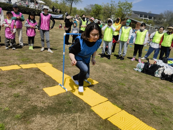 “疯狂指压板”是一个由多个小游戏组成的综合项目,这个游戏可以潜移默化地提升老师们的工作效率,让大家意识到做好合理规划的重要性。在这项游戏中,各队伍要通过全员合作方式来完成跨越栅栏、钻过栏杆、指压板跳绳、金鸡独立等任务。老师们不惧疼痛,充分发挥团队协作、顽强拼搏的精神,齐心协力完成挑战,在增进彼此的情感同时,更收获满满的自豪感和幸福感。