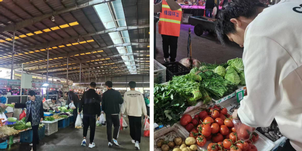 到达目的地后,调研组分成两小队展开调研。为了调研的真实性,他们乔装成普通的买菜居民,本着高度的责任感,到多个批发商处仔细察看、询问近期的菜类品种与最新时价。通过调研,学生们收集了多种菜类的市场价格,并做了详细记录,为下一阶段我校的食材采购工作提供了有力的数据参考。