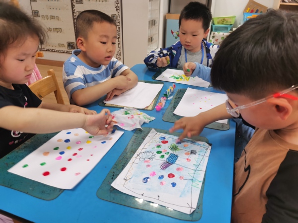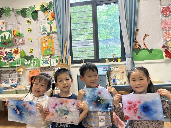 谷雨时节降雨频繁,故有“繁花随雨落,繁华扑面来”的民间谚语。中班幼儿用彩色的颜料创作出许多关于“谷雨”的美好景象,运用水滴的浸润效果,通过晕染感受画作的色彩美和抽象美。一幅幅作品呈现了他们的奇思妙想,感悟多彩的春天!