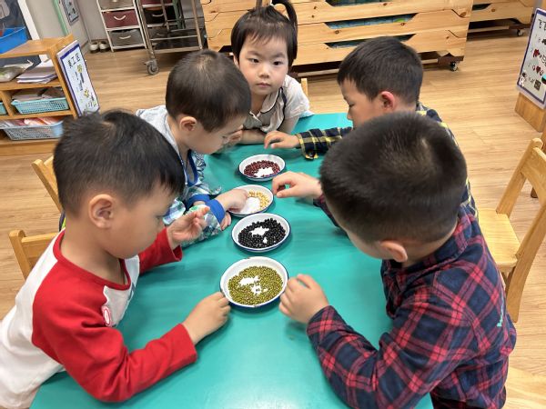 俗话说“谷雨前后,点瓜种豆”,小班的萌娃们也来体验劳动耕种的乐趣,在老师们引导下了解了豆子的种类和种植步骤。一个个小身影忙个不停,他们小心翼翼地埋下一粒粒小种子,松土、挖坑、播种、覆土、浇水……一气呵成,孩子们高兴地拍手欢呼期待着小种子快快发芽,就像已经看到了丰收的景象一般。