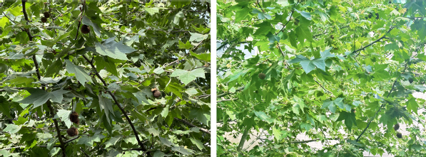 我校明故宫校区法桐较多,大多集中在道路两侧和学生宿舍区。临近夏季,法桐生长茂盛,高大的树冠仿佛一把把撑起的巨伞,遮天蔽日的林荫大道和周边相映成景,构成了校园一道靓丽的风景线,成为南航师生心中永久的美好回忆。景色虽好,也有烦恼。因法桐生长特性,每年4月初至5月下旬,树上悬挂的果球逐渐成熟爆裂,进入果毛飘絮期,漫天飞舞的飘絮给师生出行和身体健康带来了一定的影响。一团团“毛毛”四散飞舞,往眼睛里飞,往鼻子里钻,过敏人群更是一连串喷嚏打下来……随着近期气温上升,校内的法桐果毛飘絮又开始肆虐。