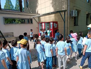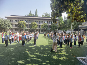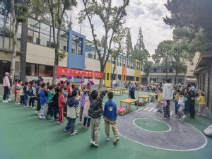 为了更好地推动幼小双向衔接,帮助大班幼儿更加全面、直观地感受小学的人文环境以及小学生活,5月15日,大班幼儿一起走进瑞金北村小学,开展“大手拉小手,欢乐校园行”小学半日沉浸式体验活动。幼儿观摩体验了小学的升旗仪式和周一晨会;走进小学教室,体验了小学课堂;在小学体育老师的带领下,跟小学生哥哥姐姐一起互动,体验了户外体育课……提前感受了小学的学习生活。在小学生朗朗的读书声中,大班幼儿还参观了小学环境,他们漫步在小学校园的各个角落,高高的教学楼、大大的操场、充满艺术氛围的文化长廊,还有与幼儿园不一样的洗手间……一切都让他们感到新鲜和好奇。他们认真地观察着校园里的每一个角落,同时也在想象未来属于他们小学生活的样子。