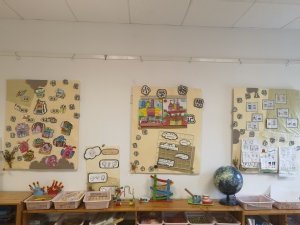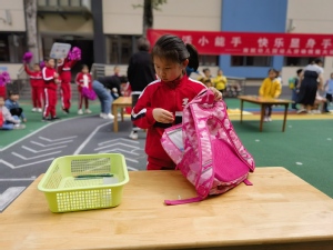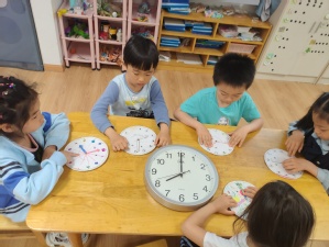 在整个大班阶段,更多的幼小衔接活动是贯穿和融合在幼儿园一日生活和课程中的。如:大班幼儿进行日常自主分餐、做好值日生、整理物品、照料植物等,通过自主地参与劳动,不仅有利于幼儿树立正确的劳动观点和劳动态度,而且能使他们体验到劳动的辛苦与快乐,培养幼儿热爱劳动的良好品质和任务意识,更好地为进入小学做好准备。各班级通过开展丰富多彩的幼小衔接教学活动,如“认识学具”“认识时间”“认识新朋友”“小书包”等活动,支持他们在体验和探索中丰富对小学的经验认知,培养他们良好的学习习惯和能力;各班级还通过创设“小学畅享记”“我要上小学啦”等主题墙和区域环境,营造即将上小学的氛围,激发他们对小学生活的向往和想要上小学的积极情感。