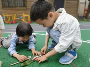 “小满”时节,大自然充满生机,相传“小满”为养蚕神诞辰,老师以此为教育契机开展了养殖“蚕宝宝”活动。幼儿化身小小饲养员,喂食桑叶,观察蚕宝宝的成长过程。中班幼儿还利用餐巾纸、吸管等材料通过卷、画的技能动手制作会动的蚕宝宝,活灵活现的蚕宝宝让幼儿见证了生命的奇迹与伟大,感知生物成长的多样性和独特性,提高了幼儿探究的兴趣。