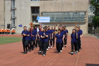 铿锵激昂的进行曲奏响在运动场上,后勤集团的八支代表队及工作组方阵昂首阔步,踏着整齐的步伐,喊着嘹亮的口号,以饱满的激情步入运动场。