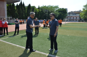 5月19日下午,后勤集团在明故宫校区田径场举办第十二届文体节开幕式暨职工趣味运动会。校长助理黄炳辉、集团全体党政领导及来自各中心(部门)的八支代表队参加了本次活动。开幕式由后勤集团总经理助理、工会主席李民惠主持。