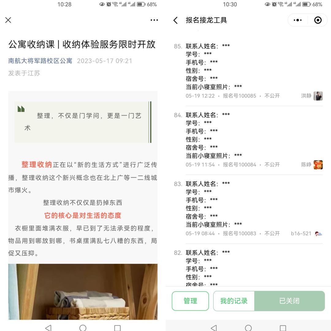 “感谢南航公寓给我们这次体验的机会,在快节奏的当下,很多人会忽视住宿环境的营造,整理收纳更是我们生活中的痛点。这次收纳体验让我知道了各种盒子、标签的重要性,也学到了很多有用的收纳技巧。”参与体验的张同学在收纳结束后表示在这四个小时内自己收获满满,其他同学也纷纷感叹终于认识到收纳的重要性,不仅让生活环境得到改善,也感受到了劳动后的获得感和幸福感。