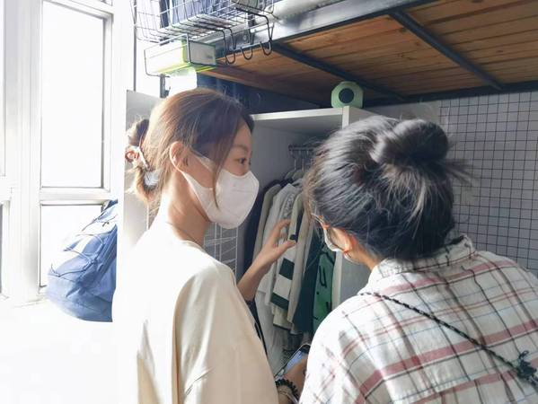 公寓服务中心和“她与家收纳公司”召开会议,对收纳课程设计进行深入研讨,收纳师们也在前期多次深入各类型寝室,对寝室布局、组合家具的收纳空间进行整体测量,针对不同寝室结构配备适合的收纳物料。整理过程中,收纳师在详细了解了同学们的需求,分析同学们整理收纳的痛点后便带起一次性手套对物品进行归类。同学们也在旁边仔细观摩学习,配合收纳师将不再需要的物品挑选出来。“整理过程中,对物品进行取舍也是非常重要的,那些几乎没用过的、质量不好的、变形散架的物品需要及时地‘断舍离’,不会取舍的收纳,只能是越整理东西越多、越乱。”收纳师一边跟同学讲解,一边麻利地做着物品分拣工作。