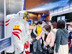 通过近距离触碰、探索中国空间站、月球车、火星车等航天器,深入了解中国航天发展史,切实感悟“两弹一星”精神、载人航天精神内核,教师们深刻体会到党的二十大报告中的航天元素,为中国航天事业的迅猛发展感到振奋。