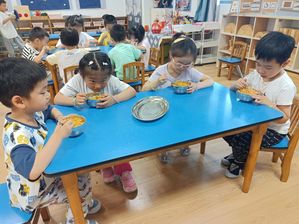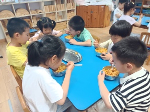 夏至和端午怎么少得了美食呢!幼儿园的厨房师傅还为小朋友们精心制作了营养美味的“夏至面”,美味软糯的“端午粽”。幼儿围坐在一起,享受美食,体会传统节日的快乐与童趣,看他们吃得多香啊!