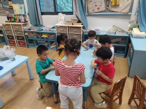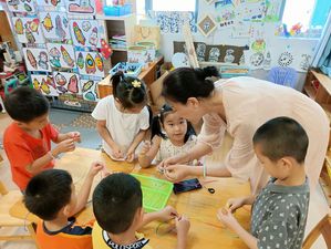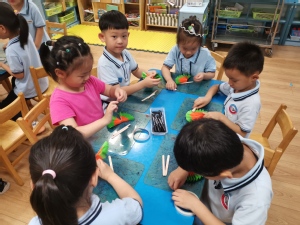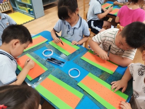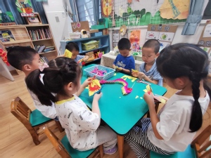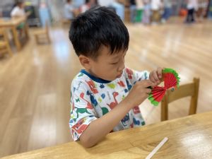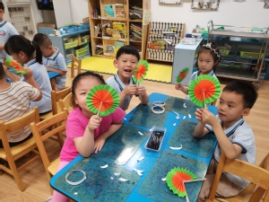 炎炎夏日,你有什么防暑小妙招呢?除了吹空调、吹电风,扇扇子也是一个简便实用的好方法。心灵手巧的幼儿自己动手制作小扇子,他们通过折、粘贴、添画的方法,不一会,漂亮的扇子做好啦,扇一扇,真凉快!