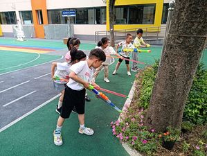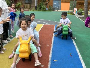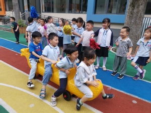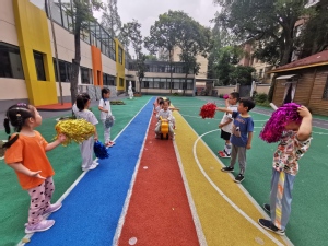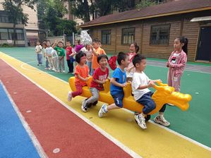 赛龙舟是端午节的一项重要活动,寓意祈求富佑、风调雨顺,事事如意。幼儿化身龙舟选手,开始了热火朝天的赛龙舟比赛。小选手们你追我赶,进行着一轮轮的较量,场面非常激烈,周围的加油声此起彼伏,整个场面热闹万分。幼儿在快乐游戏的同时,也感受到了团体协作的乐趣。
