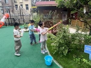 玩水是小朋友们最喜欢的活动,为了体验夏季生活的乐趣,感受水的清凉,幼儿还进行了运水接力赛、玩水枪、浇水等玩水活动,尽享清凉一夏。