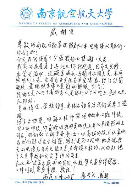 此次活动提高了支部全体党员与员工的服务意识,为老同志做好事、办实事,解决实际困难,切实增强离退休老同志的幸福感和安全感。今后,水电与维修服务中心党支部将坚守后勤人的初心和使命,付诸更多实际行动,让南航成为一个充满爱、传递爱的温暖大家庭。