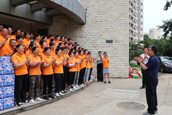 烈日炎炎,领导的关心和慰问,似缕缕清凉让坚守岗位的职工倍感亲切和鼓舞。高温仍将继续,大家纷纷表示,一定不辜负学校的期望和领导的嘱托,将以更加饱满的精神状态和更加细致的工作态度,坚守岗位、尽职尽责,为暑期学校各项工作开展和师生校园生活提供坚强有力的后勤服务保障。