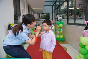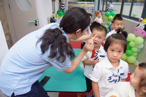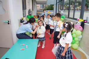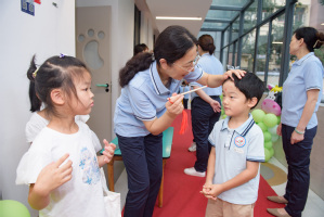 “朱砂启智勤为径,学海无涯求新知”,点朱砂俗称“开天眼”,寓意祝福孩子眼明心亮、一点就通。活动现场,老师们亲自执笔,蹲下身为孩子们在额头正中间点朱砂。朱砂启智,为孩子们开启智慧之门,希望孩子们将来都能成为我国栋梁之才。
