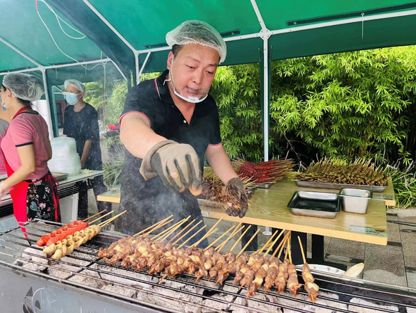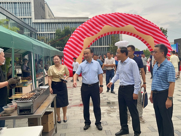 8月27日、28日下午,盛大的迎新美食展在天目湖校区南山苑门口广场拉开帷幕。校长单忠德、党委副书记陶勇、校长助理黄炳辉在集团领导陪同下亲临美食展现场。展销中,各色各类美食琳琅满目,同学们在美食推介的吆喝声吸引下争前恐后前来品尝,场面十分热闹。