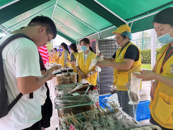 为了给广大学子带来一场难忘又心动的美食体验,此次展销汇集了各式各类的五十多种美食,新鲜出炉热气腾腾的小吃、精致可口的蛋糕甜点、清爽解腻的各式饮品等,均为天目湖校区食堂新鲜出品,样样色香味俱全。此外,更有志愿者身穿小厨师玩偶服现身展销现场与大家热情互动,吸引小朋友们前来合影。